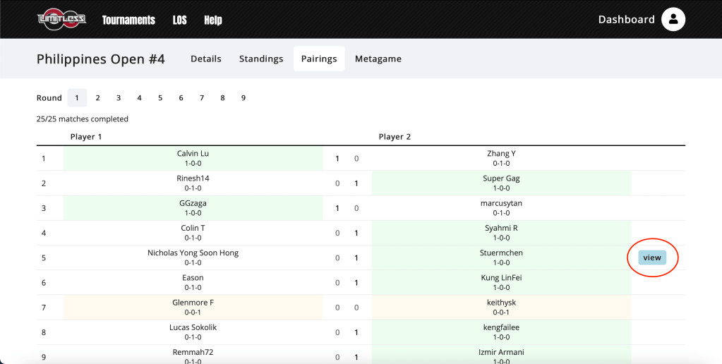 Scroll down to find your opponent. Your pairing should be the only one with a View button appearing on the right side. Click that View button.