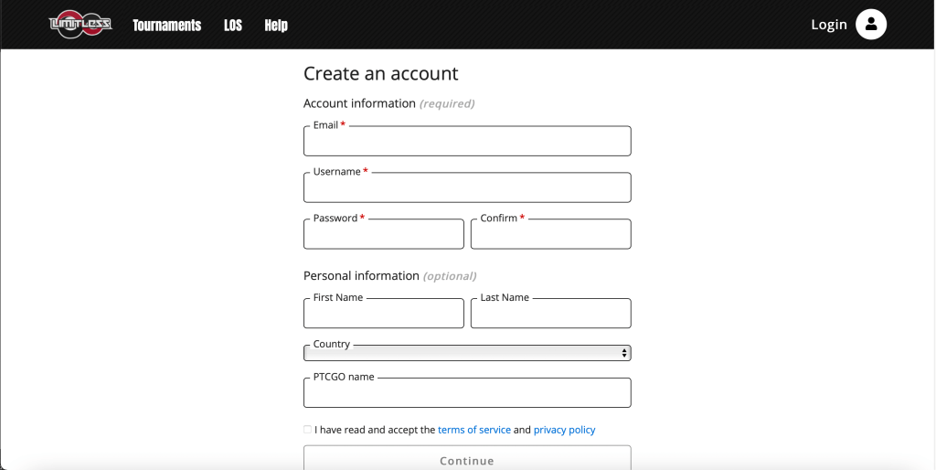 Enter your details including your Pokemon TCG Online (PTCGO) name, check the box to say you have “read and accept the terms of service and privacy policy” and click Continue. You should be prompted to enter a verification code that is sent to your e-mail to complete the registration. Once you’ve done so, now you’re ready to play some tournaments.