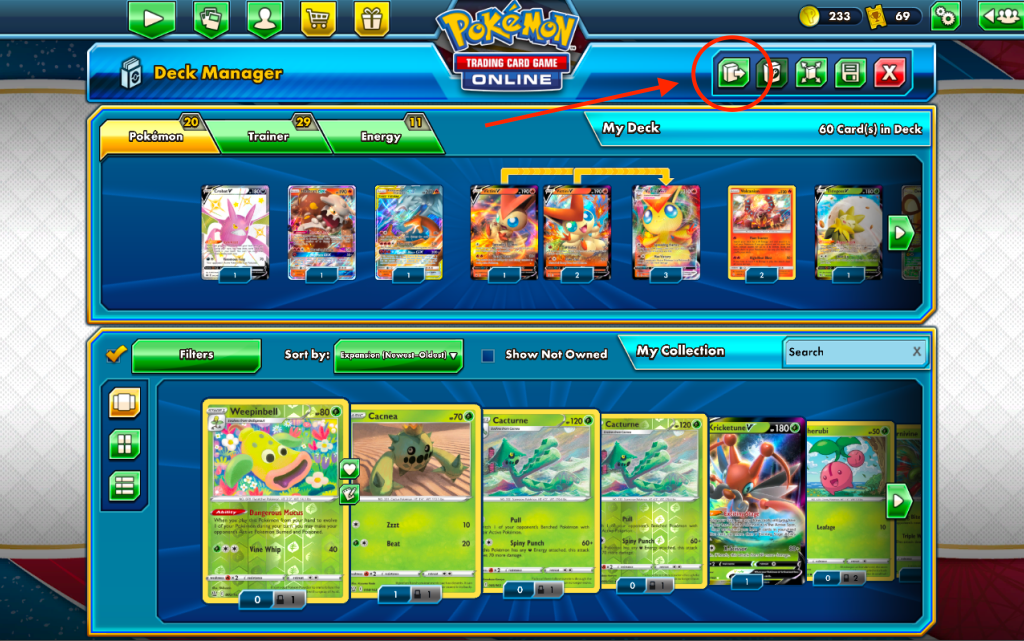 The Submit Decklist page allows you to paste a deck list from PTCGO. To copy your list, You need to go to Deck Manager, open your deck, and click this icon to copy your deck list.